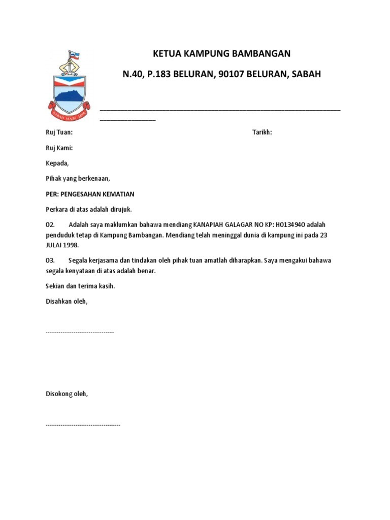 Surat Pengesahan Kematian Nenek Pdf